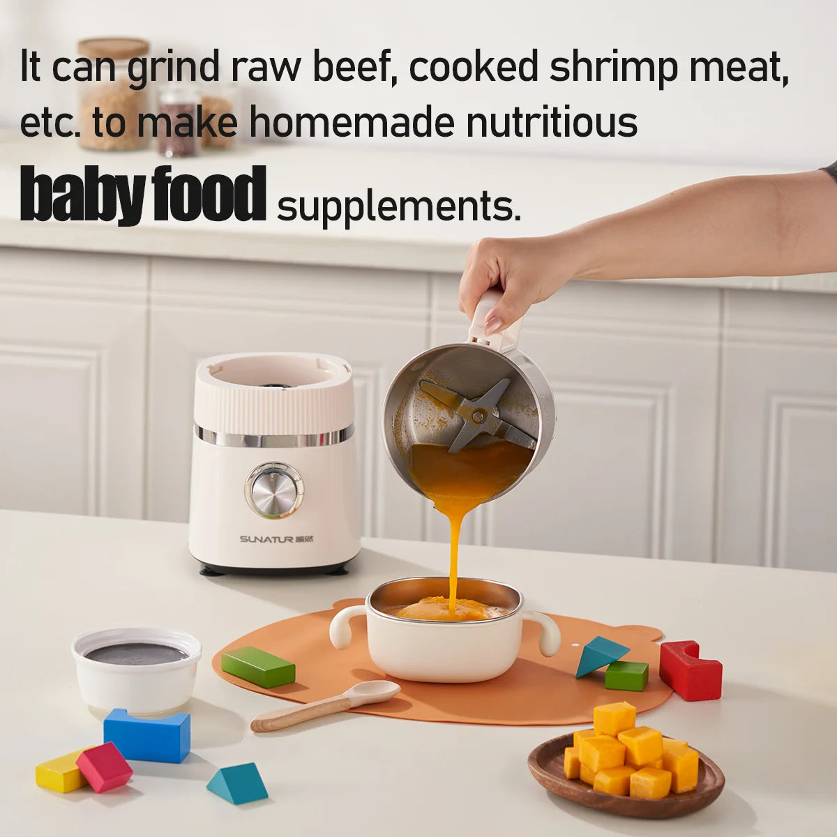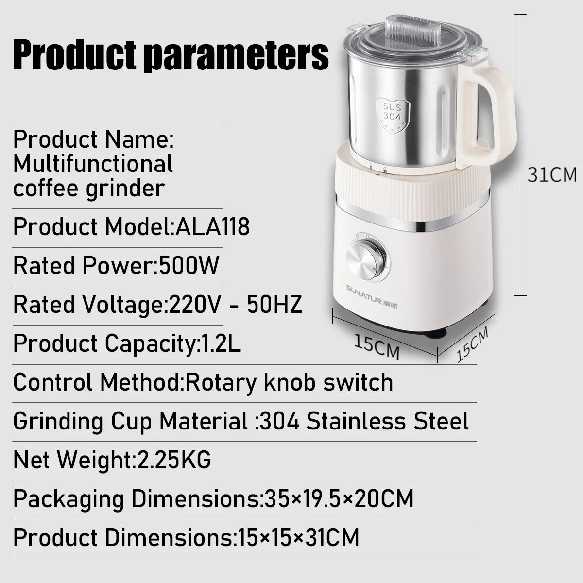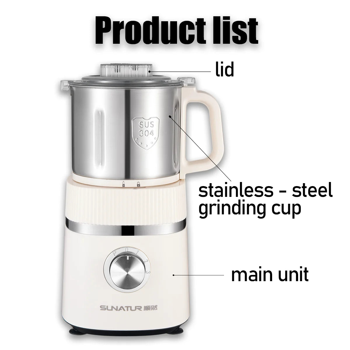 Introducing the Sunatur 500W 2-in-1 Wet & Dry Food Grinder, your ultimate kitchen companion designed to streamline meal preparation and enhance your cooking experience. Whether you're grinding spices, coffee beans, or preparing baby food, this versatile grinder offers efficiency and convenience at your fingertips.
